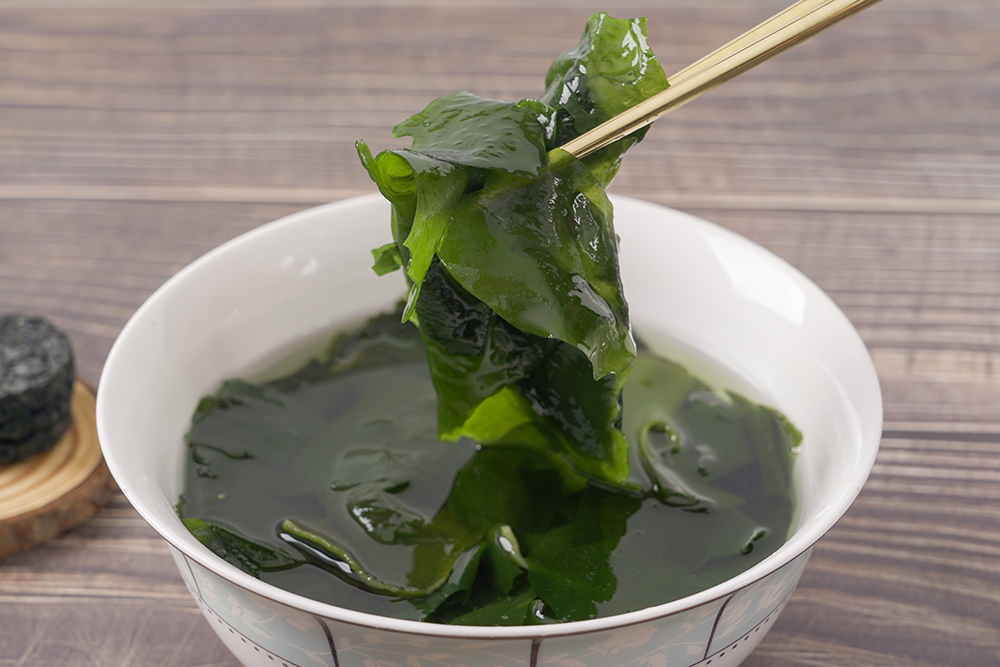 食用方法:每片裙带菜用800毫升的开水冲泡5分钟左右,可搭配水饺、馄饨、面条,煮沸即可食用。