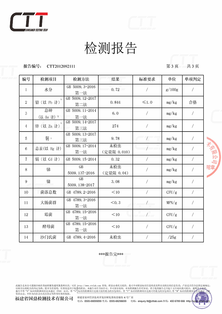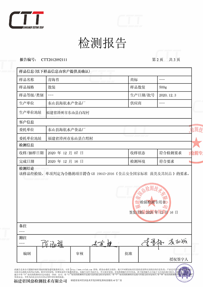 青海苔检测报告