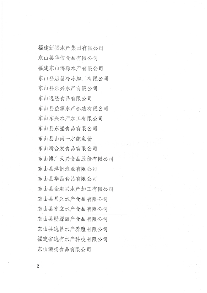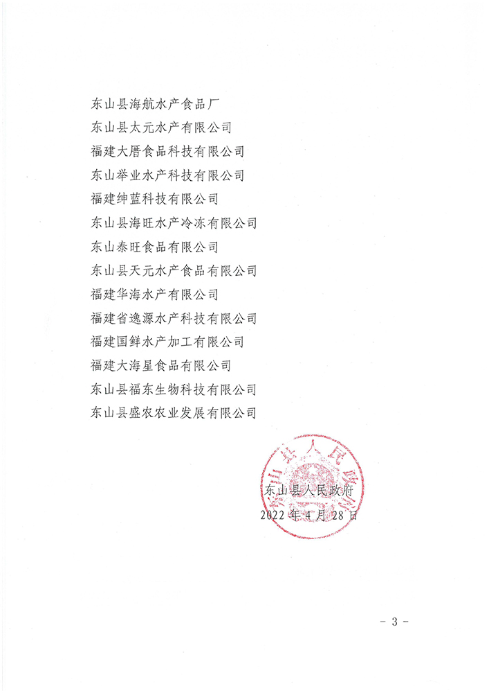 东山县人民政府关于确认第四轮县级农业产业化龙头企业的通知